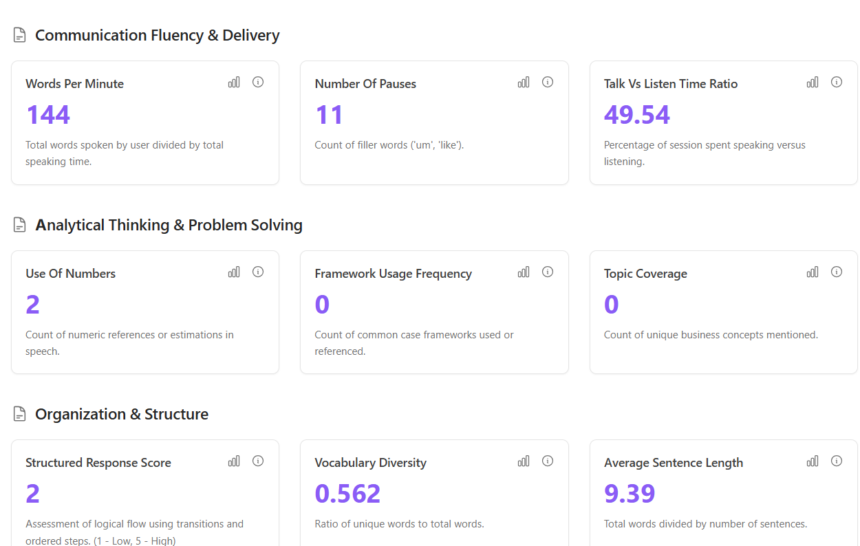 Practice interviews, presentations, and public speaking with your AI speech coach. Get instant, personalized feedback that actually helps you improve without judgment and with real results.